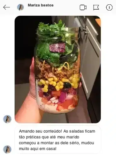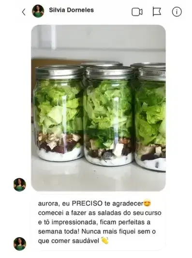 Acredito que comer bem não precisa ser complicado. Por isso, criei o método de Saladas de Pote que já ajudou milhares de pessoas a economizarem tempo, dinheiro e ainda emagrecerem com saúde.