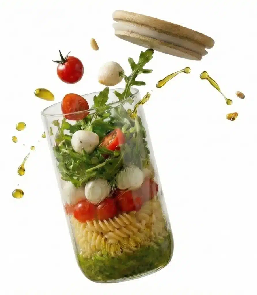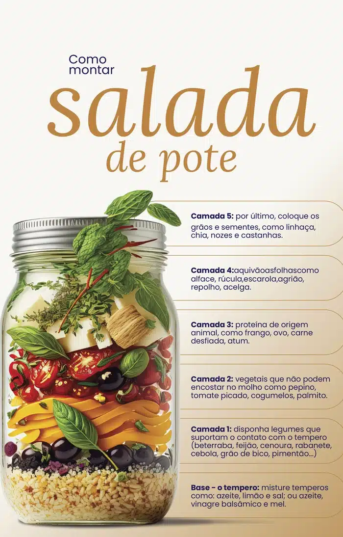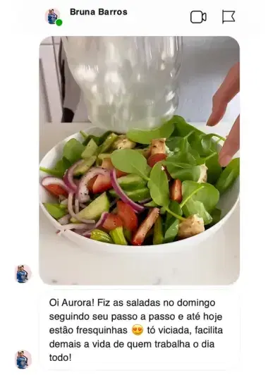 Com a técnica correta de montagem e armazenamento ensinada no e-book, suas saladas ficam frescas e crocantes por até 7 dias na geladeira!